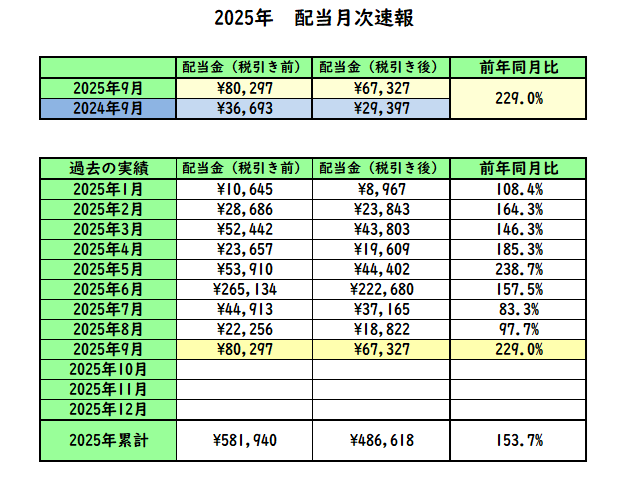 【今月の配当受取状況】2025年-9月-