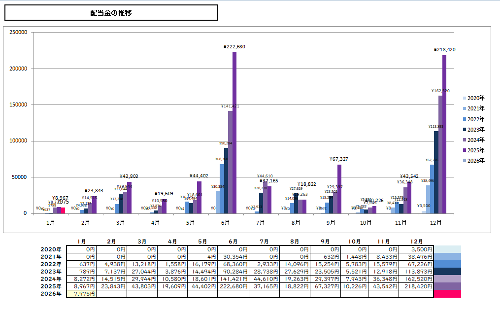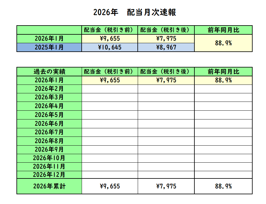 それでは早速2026年1月末時点での配当受取状況を見ていきたいと思います。