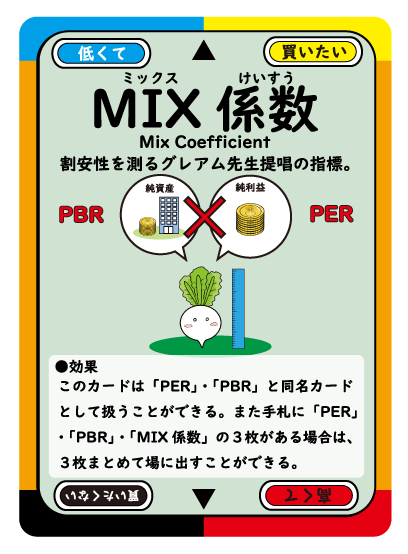 ・また「PER」・「PBR」・「MIX係数」の3枚が手札にある場合は一気にまとめて手札を減らすことができますね。