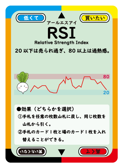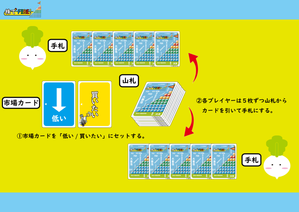・市場カード:2枚(高い or 低い / 買いたい or 買いたくない)