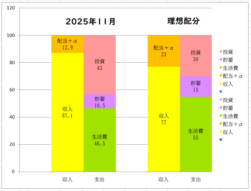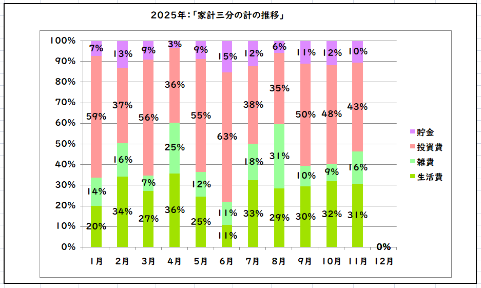 それでは早速、2025年11月の「家計三分の計(家計の内訳)」をみていきたいと思います。