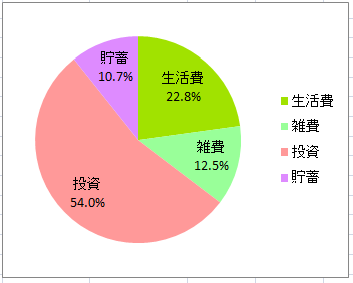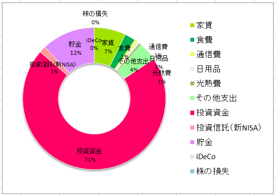 今月は収入の12.2%を貯金に、72.2%を投資資金に振り分けることができました。