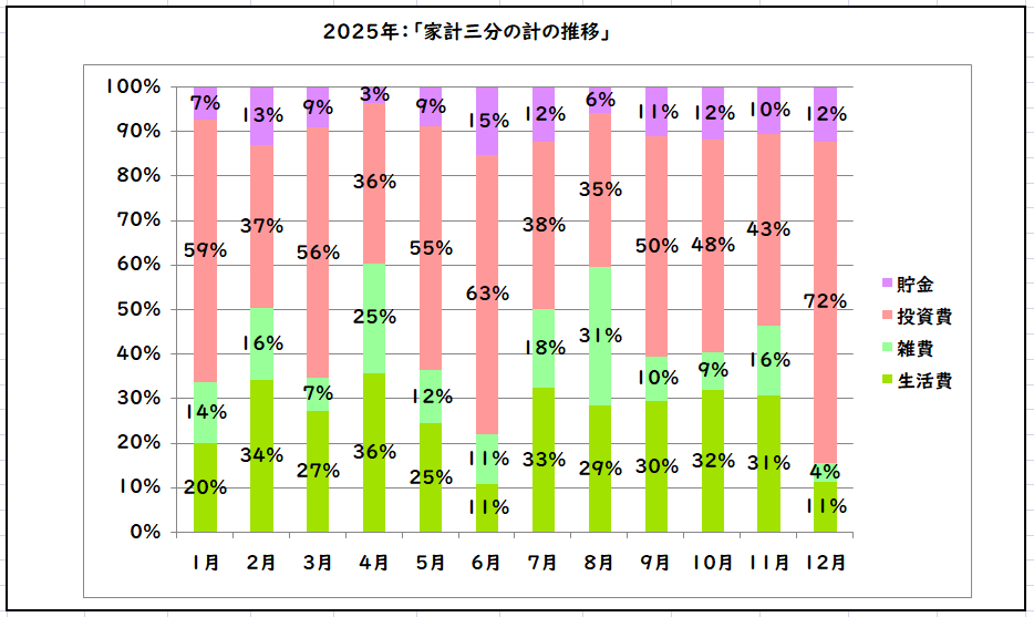 最後に2025年の「家計三分の計」の推移と今年の総括です。