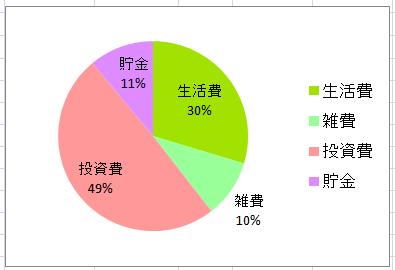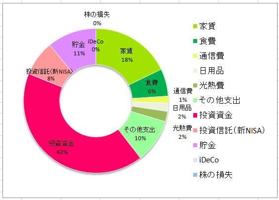 今月は収入の11%を貯金に、49.5%を投資資金に振り分けることができました。