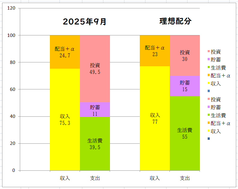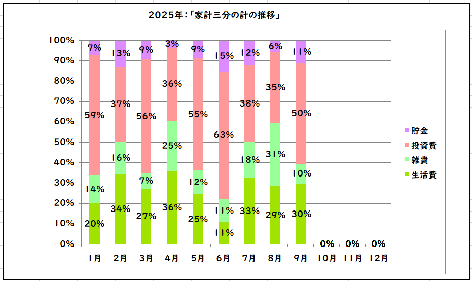 それでは早速、2025年9月の「家計三分の計(家計の内訳)」をみていきたいと思います。