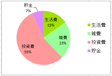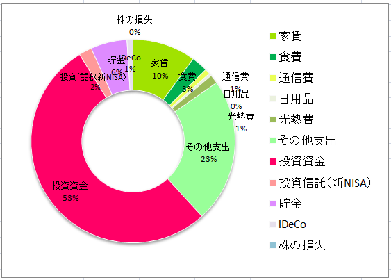 今月は収入の6.7%を貯金に、55.5%を投資資金に振り分けることができました。