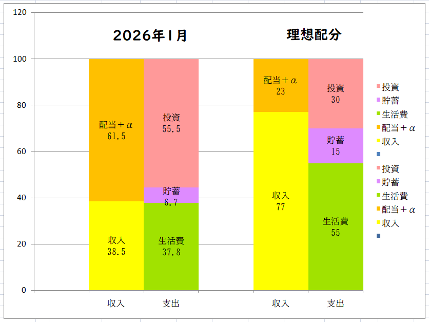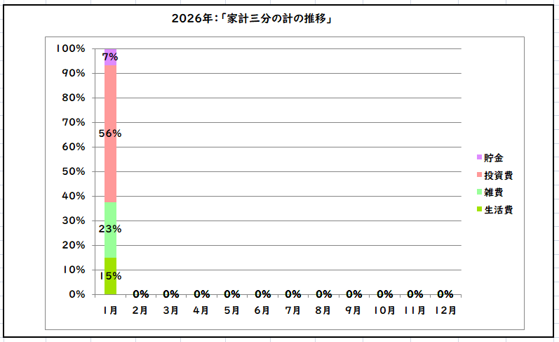 それでは早速、2026年1月の「家計三分の計(家計の内訳)」をみていきたいと思います。