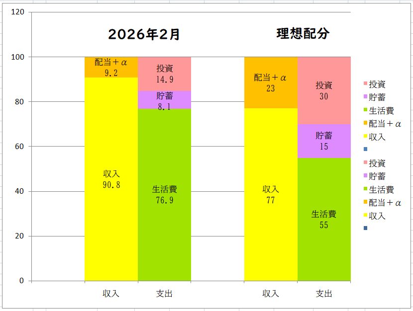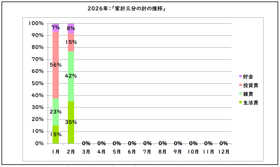 それでは早速、2026年2月の「家計三分の計(家計の内訳)」をみていきたいと思います。