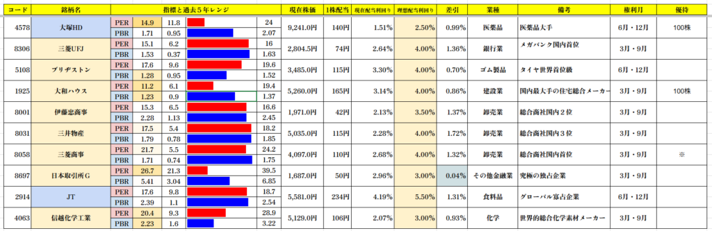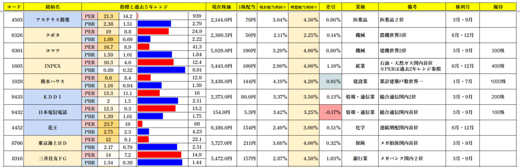 この中で理想配当利回り水準で推移している銘柄は1銘柄です。