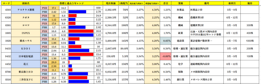 まずは銘柄リストその①です。