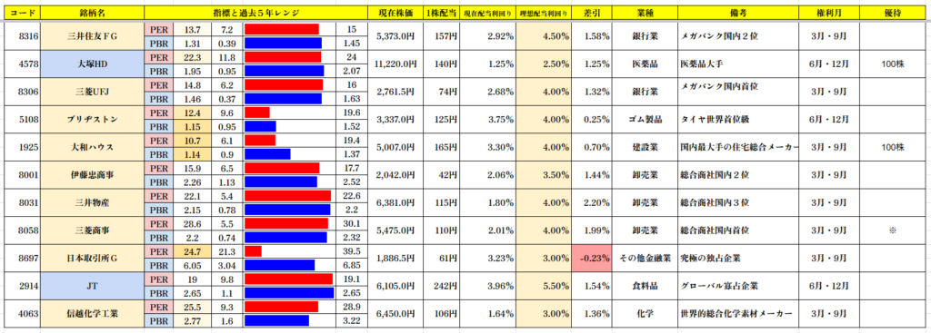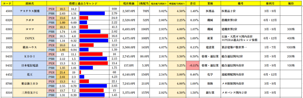 この中で理想配当利回り水準で推移している銘柄は1銘柄です。