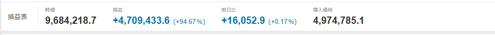 +99.4%(3012万−1566万)÷1566万(証券口座への投下資本は1566万円程度)