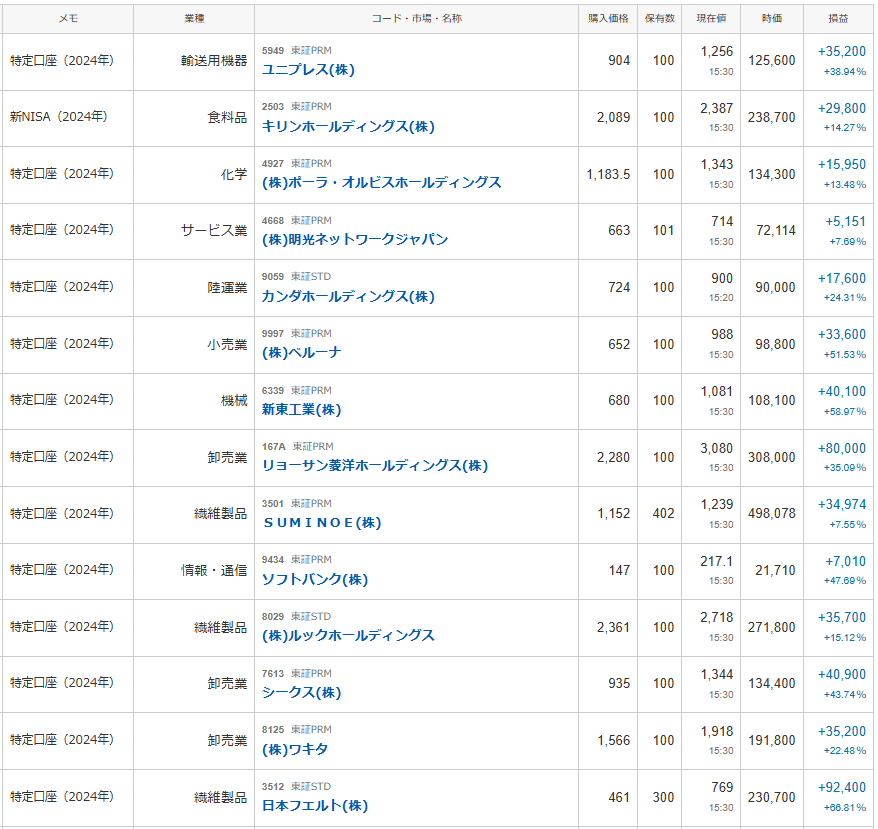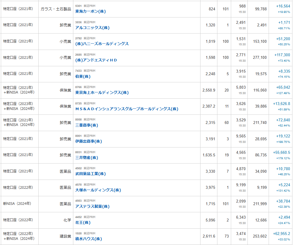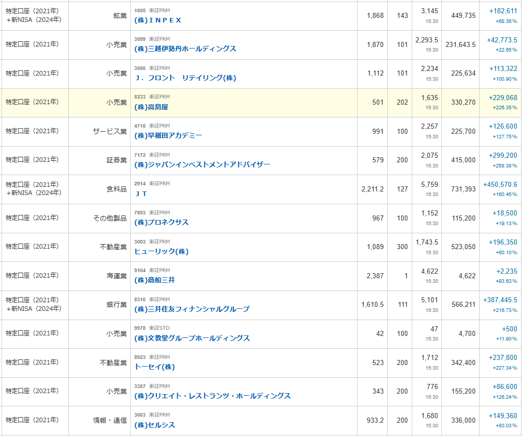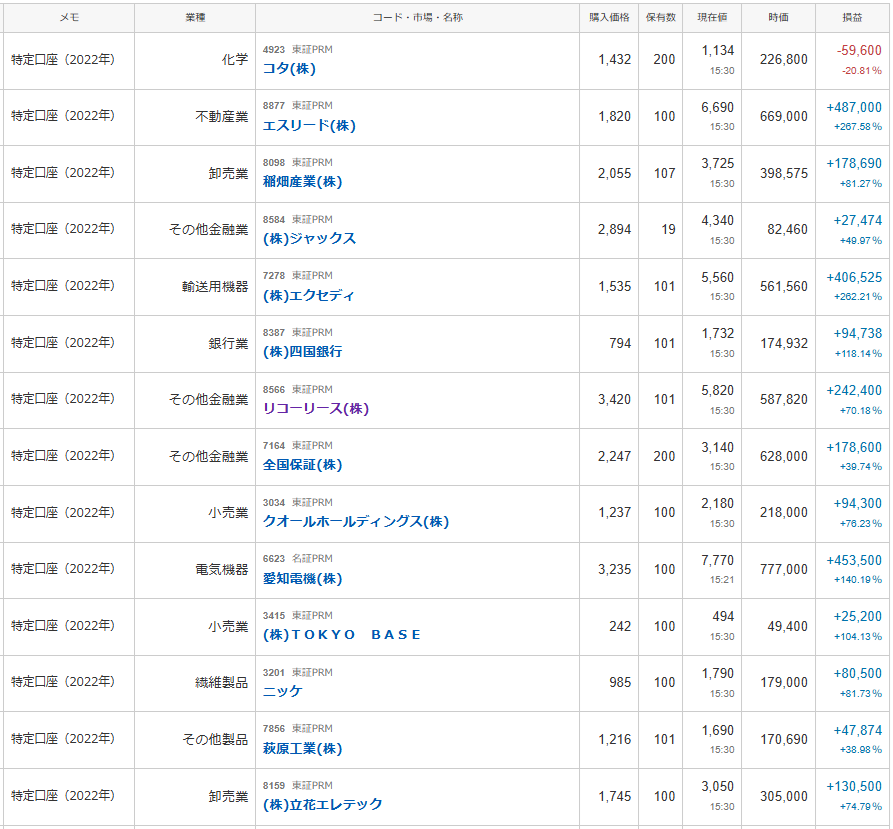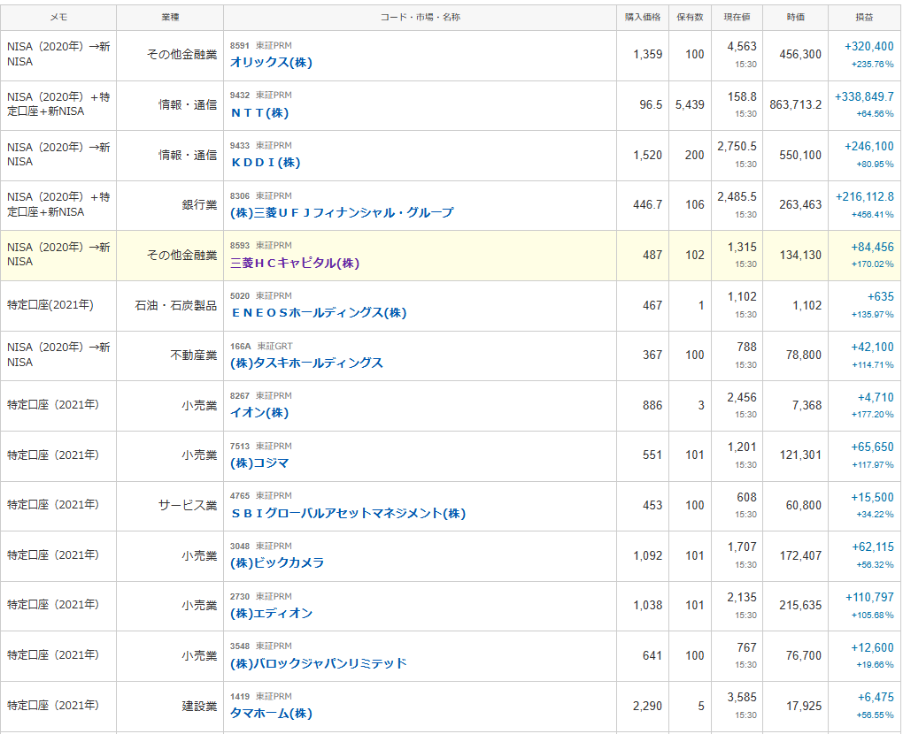 ちなみに前回から約半年後の長期保有PF観測という事になりますね。