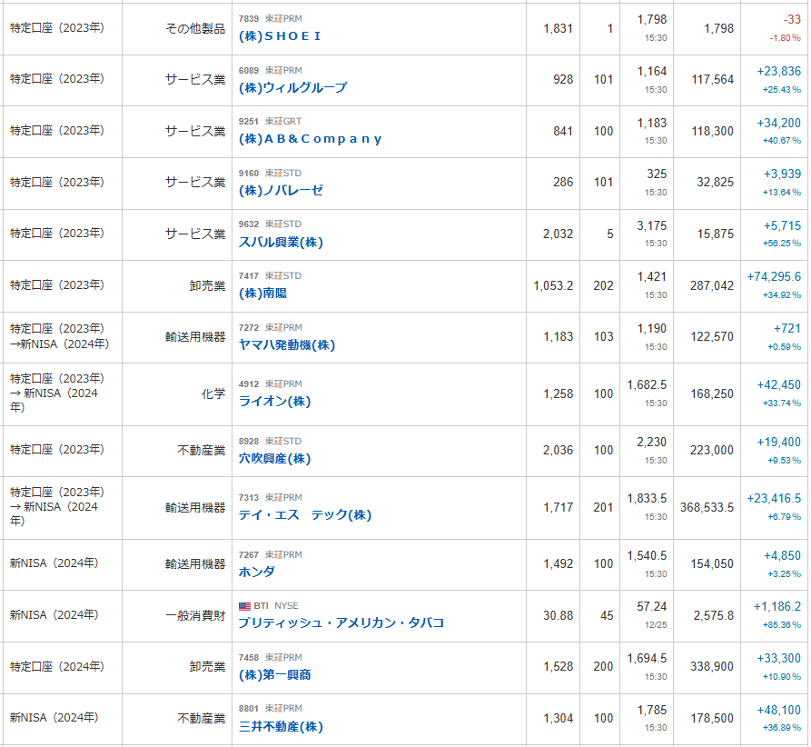 今回は2025年下半期総括ということで、2025年12月26日時点での長期保有PFをまとめてみました。