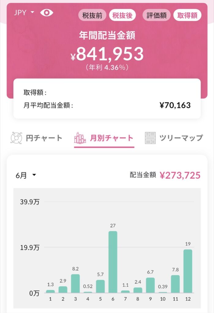 2025年4月:税引き後の年間配当72万円突破(+6カ月)
