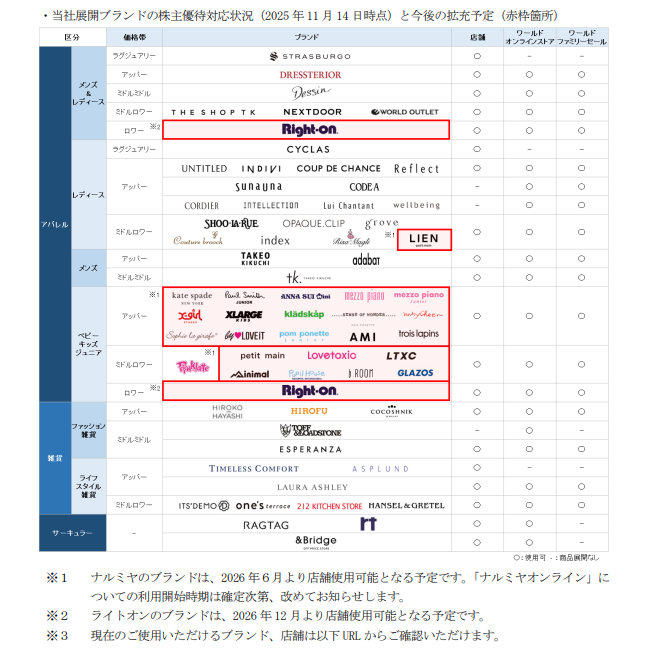株式優待制度の変更に関するお知らせ(2025年11月14日)-抜粋-