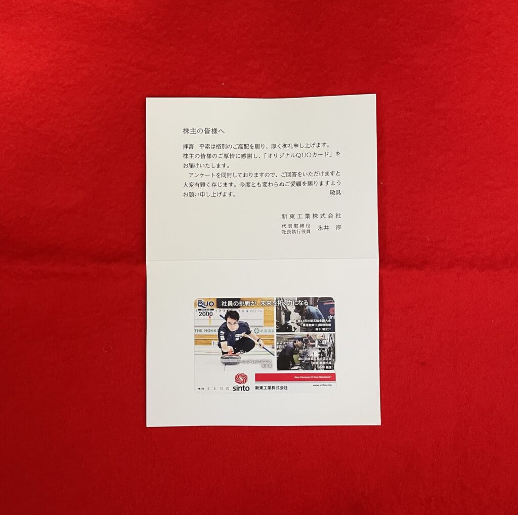 証券コード【6339】の新東工業から「QUOカード(2,000円相当)」が到着いたしました。